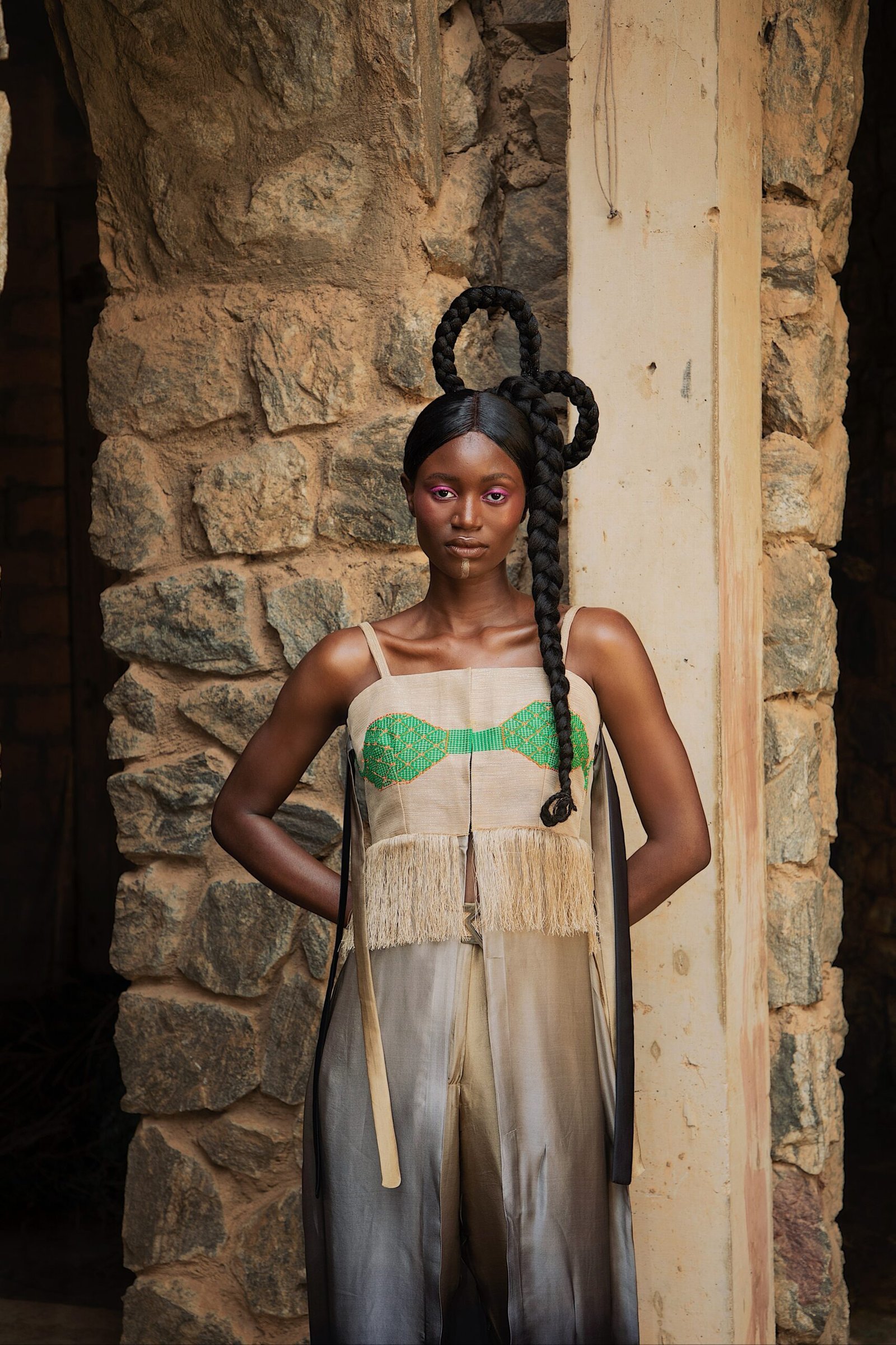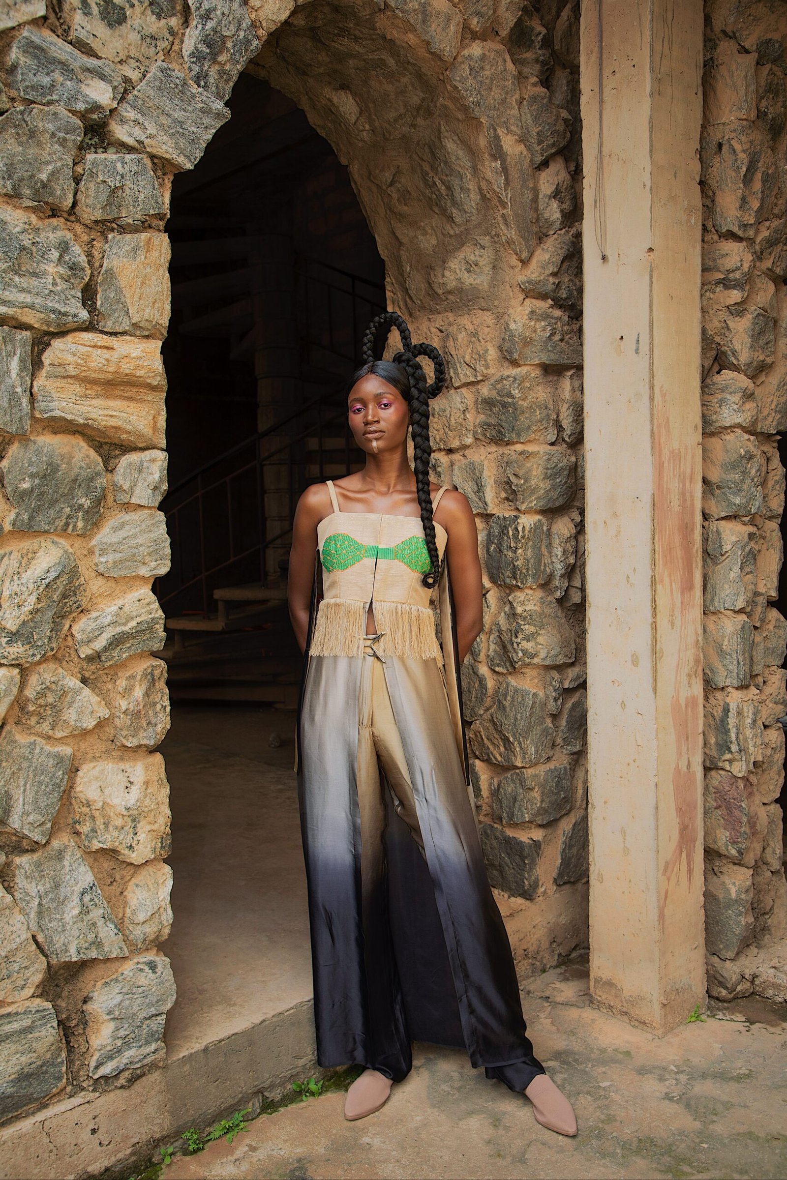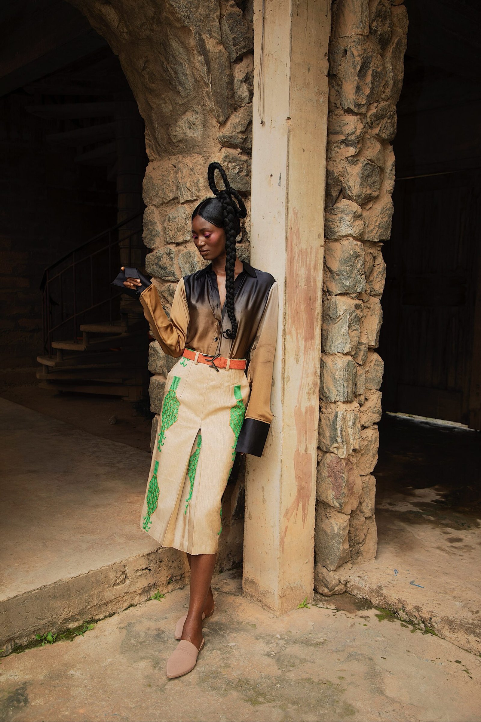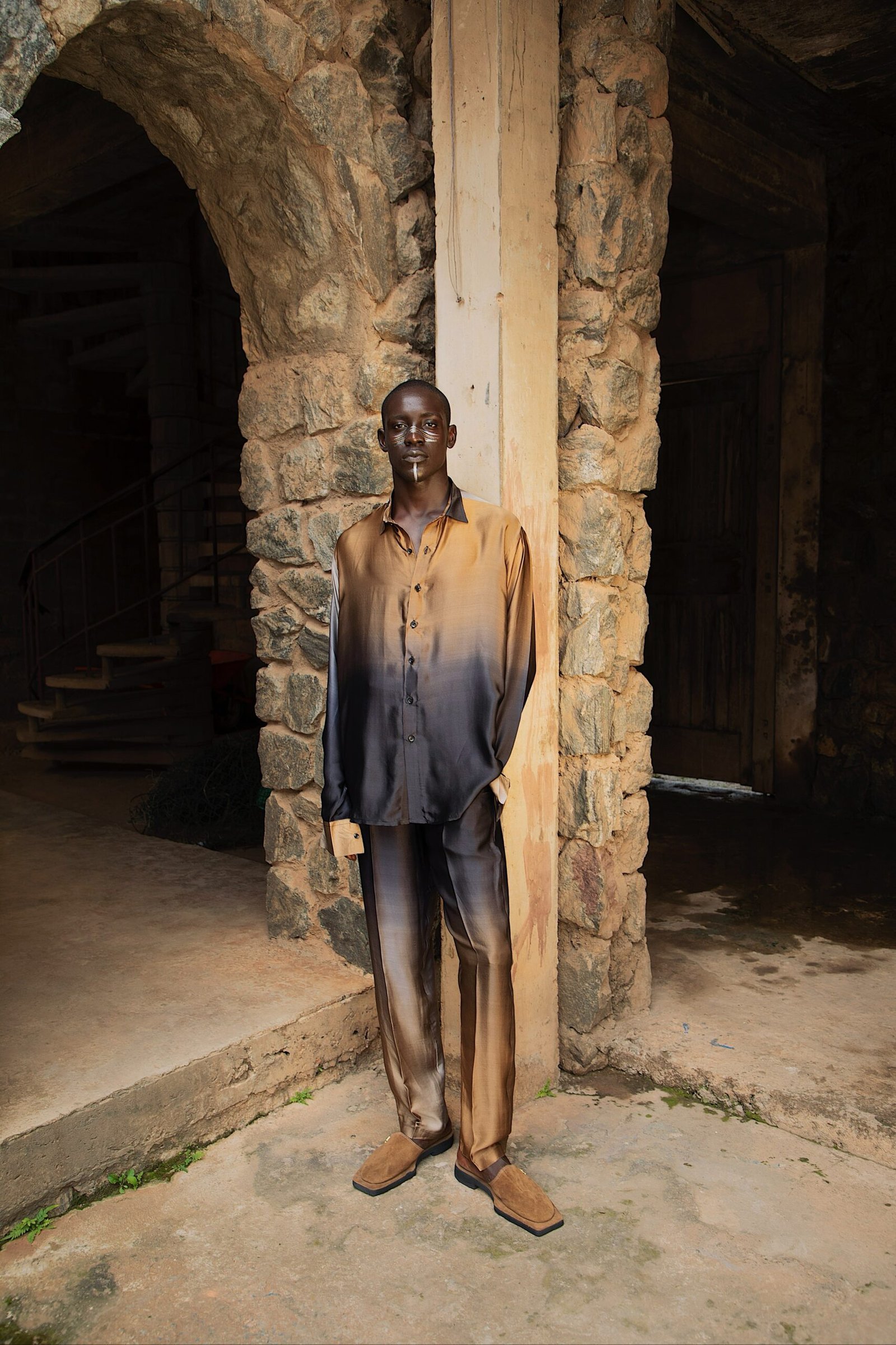 Emmy Kasbit Presents – DAWN Spring Summer 24 Campaign shot on location at the New Culture Studio, Ibadan. The collection explores the life of the meNsibidie Ekpe secret society. Men who are believed to have invented the Nsibidi script, a form of ideographic abstract and gestural signs.